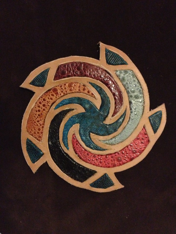 Spiral. Leather and toad skin sculpture, private commission