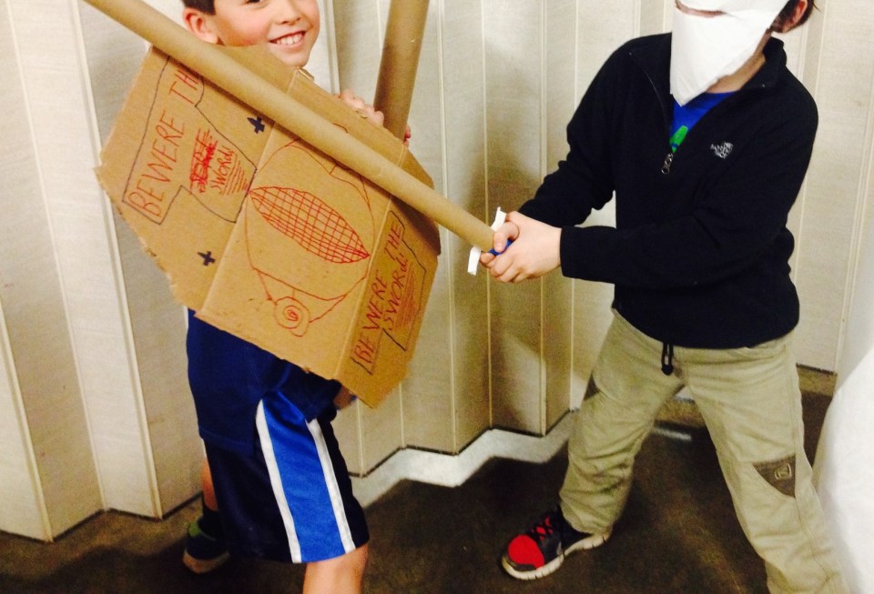 Power Items being tested. That helm on the right covers his whole head in a dome. Impressive round form sculpting from an 8 year old.