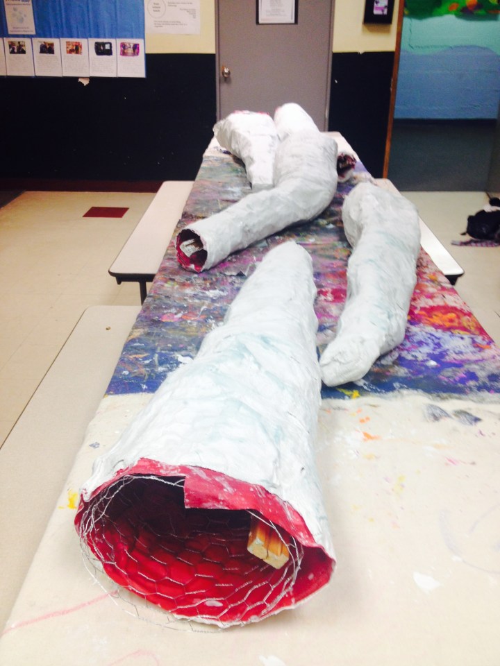 Plastered limbs waiting to dry.