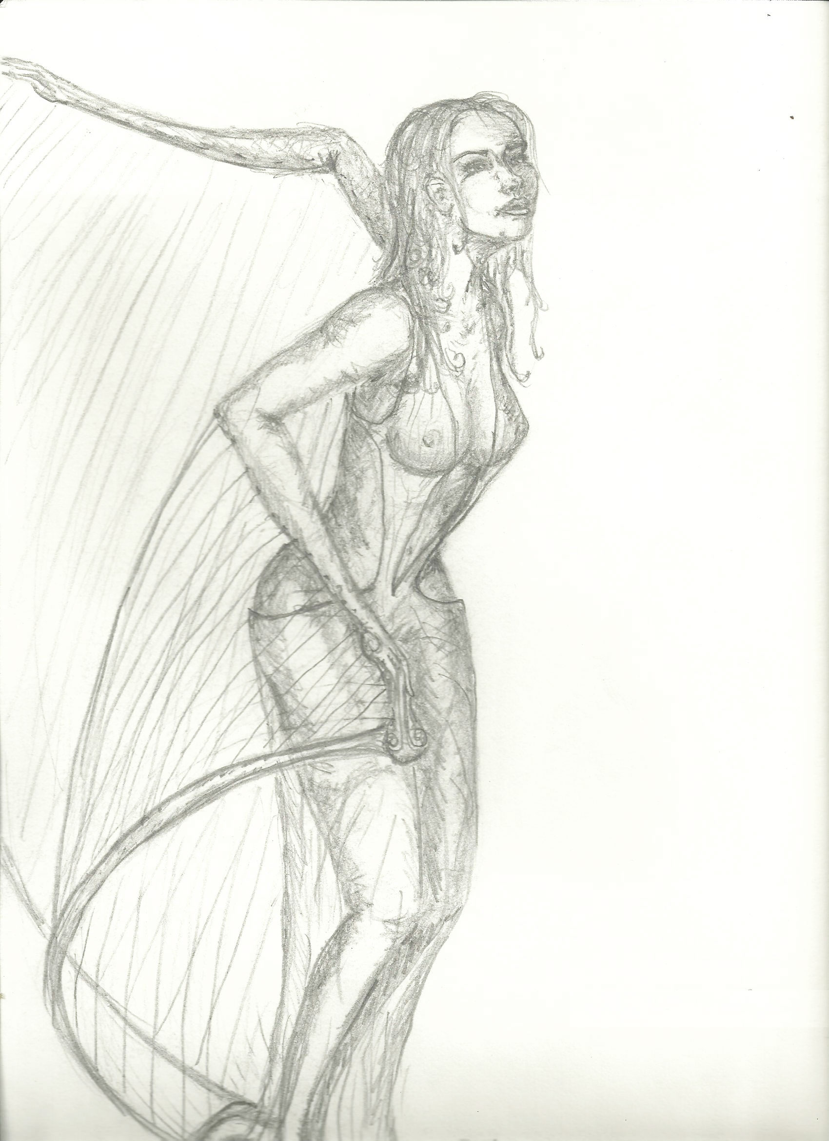Muses Transforming. Character design for Titan Realms video game, pencil on paper